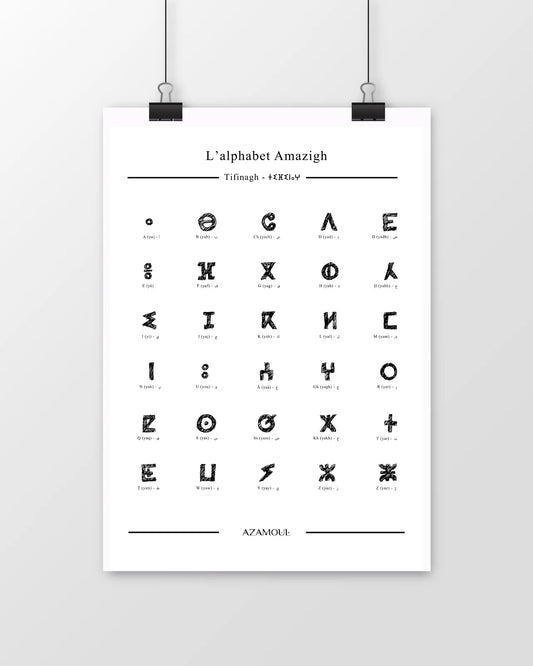 Affiche Alphabet Tifinagh - Blanc - Papier Mat Premium - Qualité musée et Label FSC