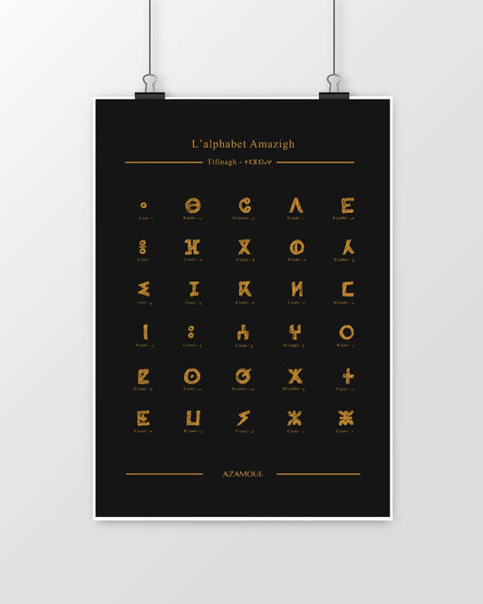 Affiche alphabet Tifinagh - Noire en papier Mat Premium - Qualité Musée - Label FSC